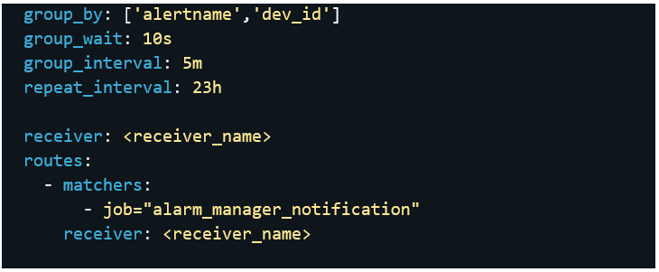 - receiver: Specifies the name of the default receiver to which all alerts will be sent.