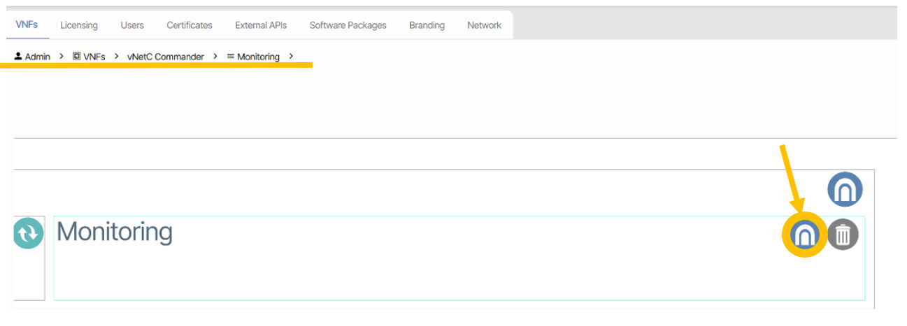 Once the config file has been copied to the VM, run a curl command inside the VM to trigger an Alert Manager API call, which will reload the config file. To do so, go to Admin/VNF/vNewtC Commander/Monitoring. Click the tunnel button inside the Monitoring box. A window prompting you to open a remote tunnel appears. Open the tunnel.