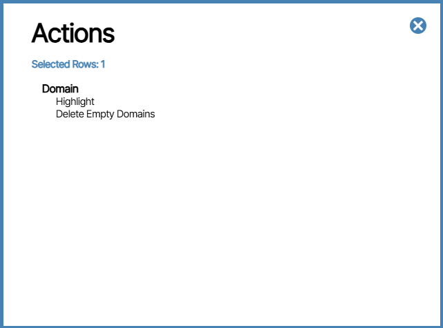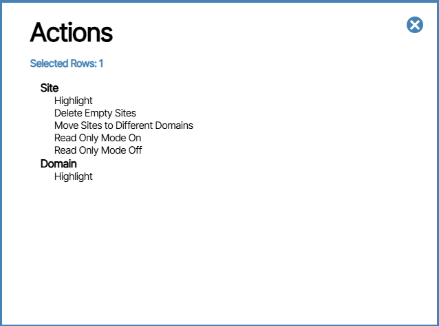 Additional actions can be imposed on sites and domains by clicking the Actions button.