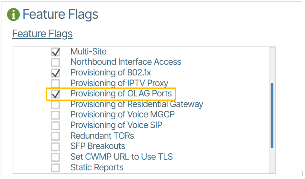 Admin/Network/Feature Flags/Provisioning of OLAG Ports