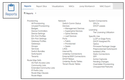 Everon™ Network Solutions provides a comprehensive list of reports to identify current conditions in the network. Reports are viewed by navigating to the Reports window