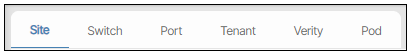 Dashboards are grouped by tab name and these are Site, Switch, Port, Tenant, Corning Everon and Pod.