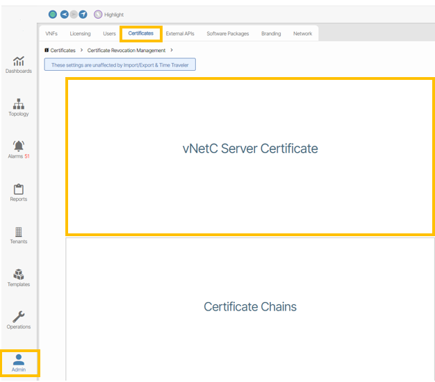 - Go to Admin/Certificates/Vnetc Server Certificates