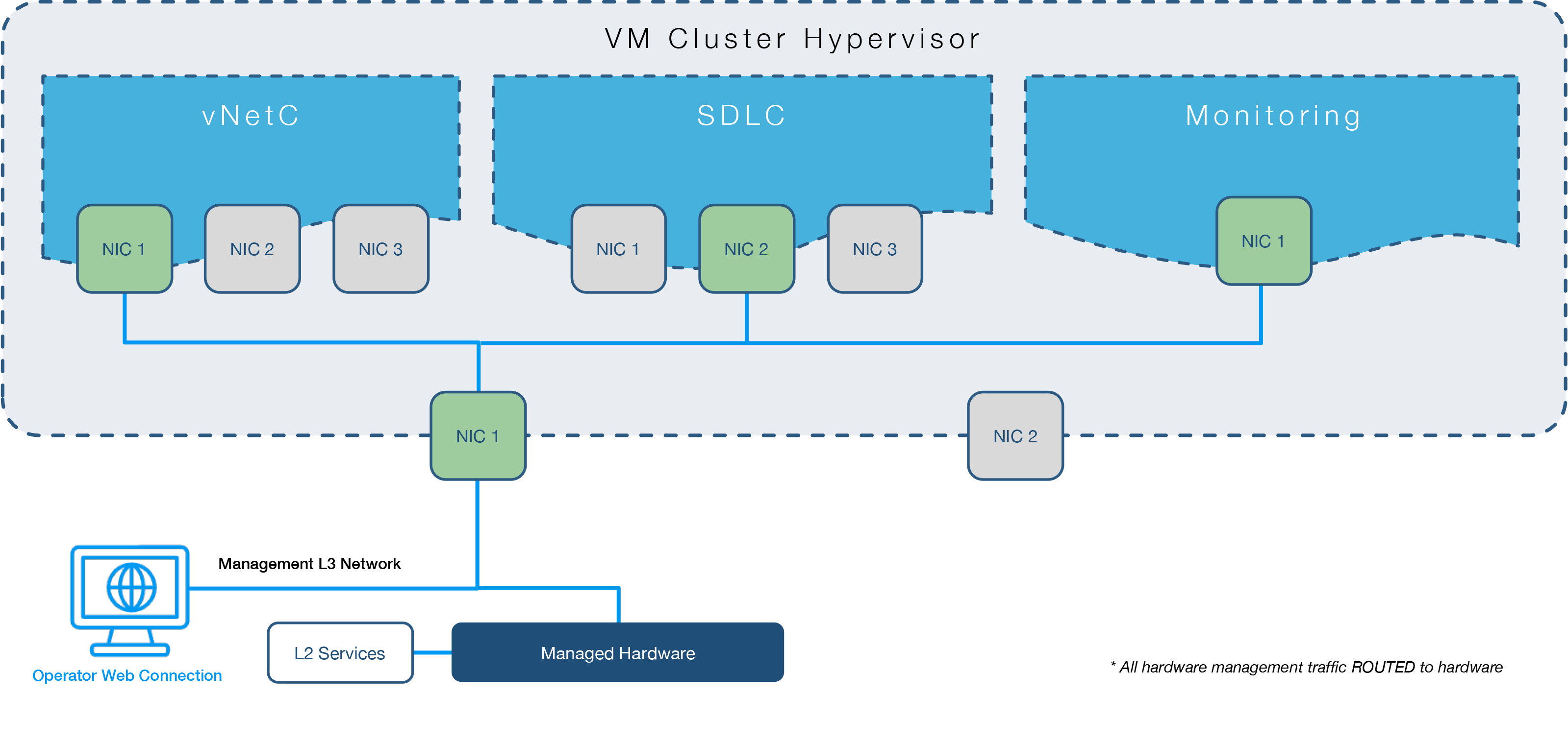 - The vNetC, SDLC and Monitoring should be on the same bridge or at minimum they must be routable.