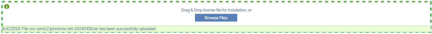 - Using the Browse Files (or drag and drop) field, import the vNetC Core Upgrade file provided by Corning.