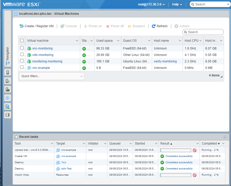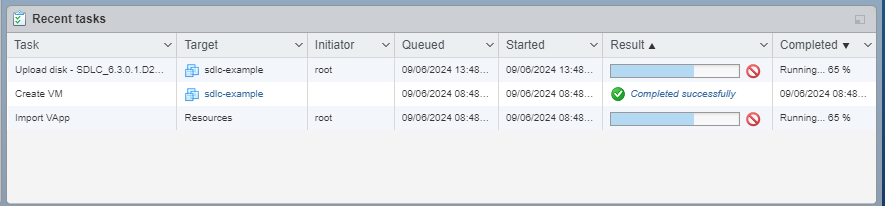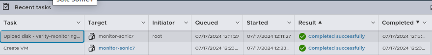 - The VM creation process will start. When the process completes the progress bar in Recent tasks at the bottom of the screen will say Completed Successfully.