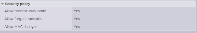 - This Port Group must be set to promiscuous mode.