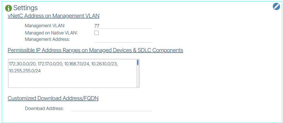 - Set up the Management VLAN used to access the Management network. This field is required even if your management switches are using untagged connections.
