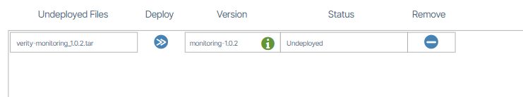 | Monitoring Software Upgrade | verity-monitoring_x.x.x.tar | tarball | Monitoring needs to be updated via GUI SD-Admin immediately after configuration and boot |