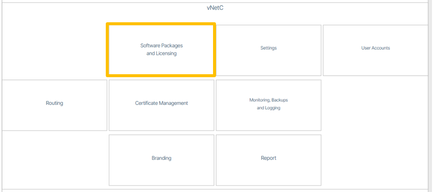 - From the Admin web page, select the Software Packages and Licensing section by double clicking and zooming in.