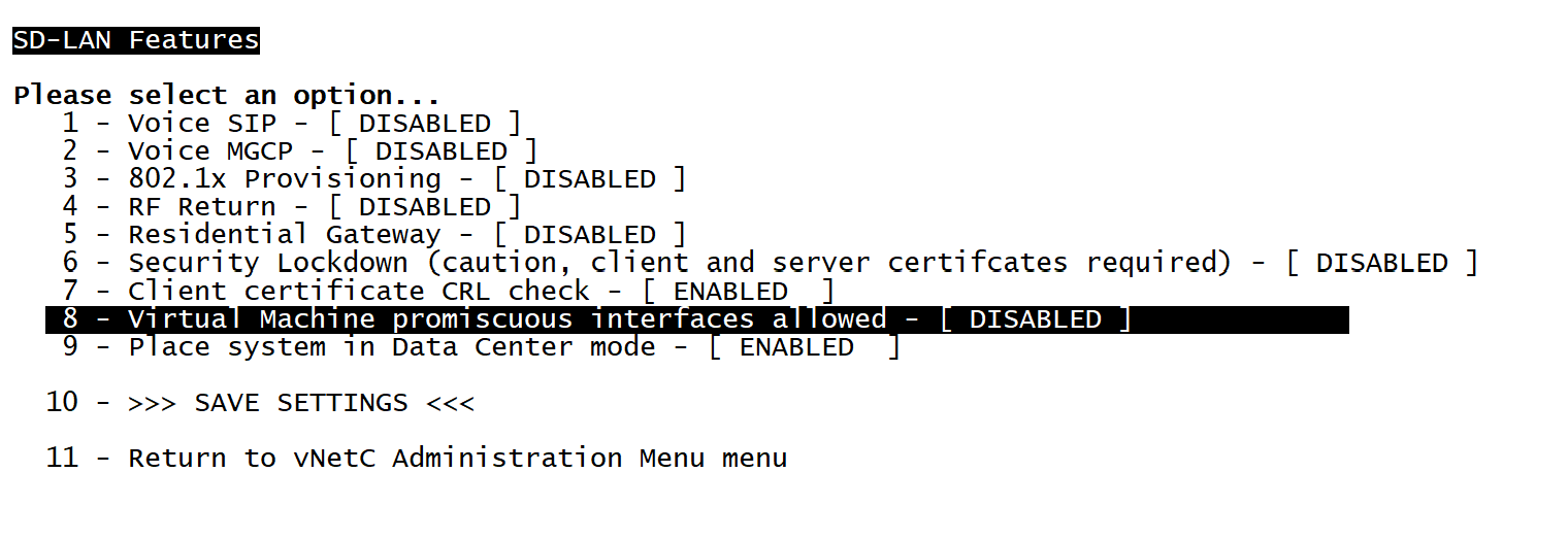 - Disable option 8 - Virtual Machine promiscuous interfaces allowed