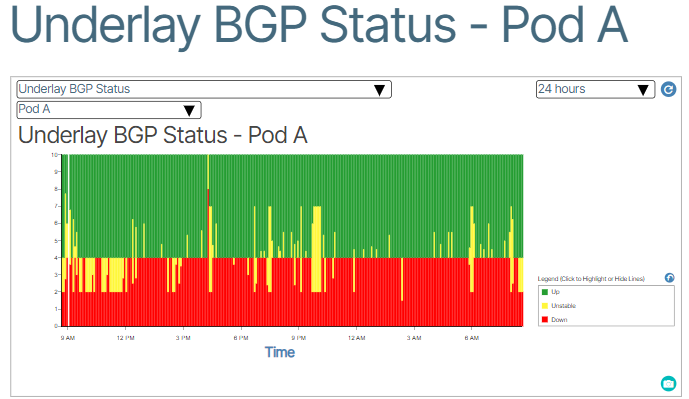The Legend provides data lines for unstable, down, preprovisioned and up. Data lines can be shown, highlighted, or hidden by clicking the square icon next to each item.